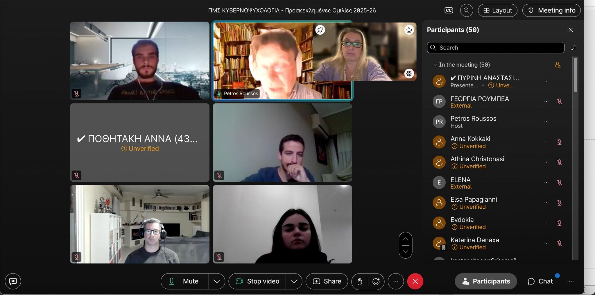 Στις 15 Οκτωβρίου 2025, η PARAGON-eduTech συμμετείχε διαδικτυακά στη σειρά Διαλέξεων Guest Lecture στην Κυβερνοψυχολογία του Μεταπτυχιακού Προγράμματος στην Κυβερνοψυχολογία του Εθνικού και Καποδιστριακού Πανεπιστημίου Αθηνών (ΕΚΠΑ).